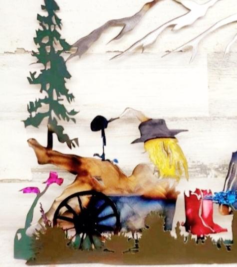 BETH IN YELLOWSTONE RUSTIC METAL WALL ART WILDFLOWERS WHISKEY HORSES MOUNTAINS &TREES