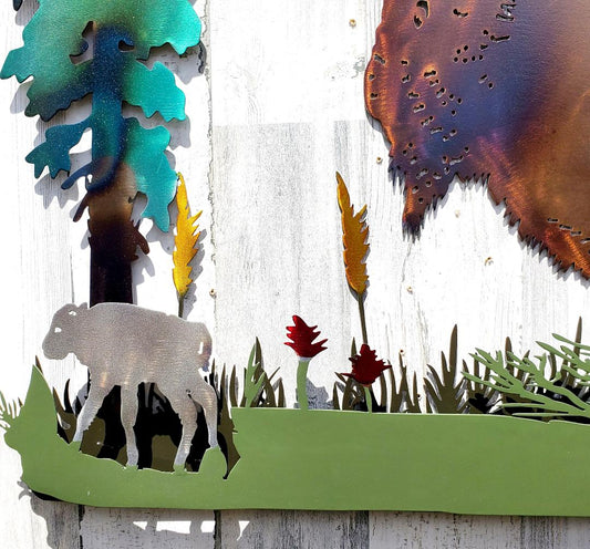 BUFFALO BISON RED CALVES YELLOWSTONE RUSTIC WILDLIFE METAL HOME CABIN DECOR