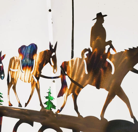MULE PACK STRING ELK MOUNTAINS TREES METAL RUSTIC HUNTING CABIN WALL ART DECOR